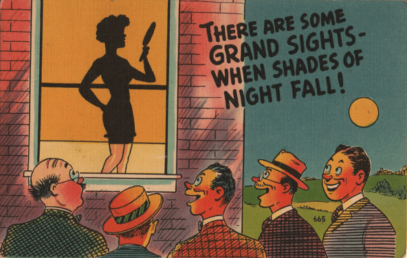 Anyway, this is why we call ‘em Peeping Toms, even if they happen to be female. In our next thrilling episode, we will consider the question more, but this time, I promise, we’ll talk about the postcards.