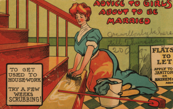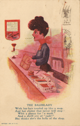 Some artists did dare to buck the trend. Reg Manning here shows a dudette who knows how it’s done. (AND shows us a useful pun.)