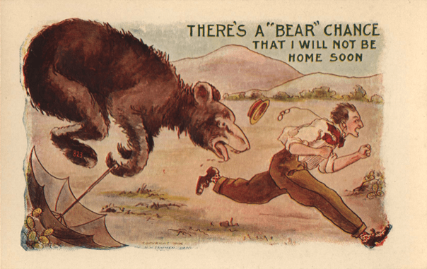 It has been a while, so I thought we might revisit the new arrivals to my inventory which I would characterize as Ass Joke Postcards. Now, I realize the world has turned around a little, and that innocent three-letter word has a popular new meaning as “Something Bad”. So, no: these are not postcards involving really bad jokes…at least, that’s too broad a definition Not ignoring the fact that in some of these the broad…look, you’ll figure it out as we move along.