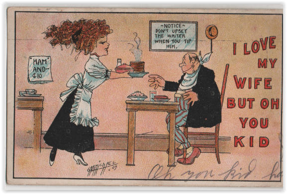 And the world of postcards was nor far behind. The gentleman at the top of this column was featured in a whole series of postcards, most of which implied he was more interested in food than anything else.