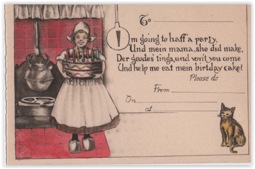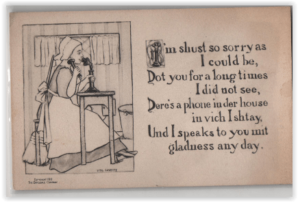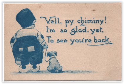 There has always been a hearty discussion of ethnic accents in pop culture: where they are a symbol of group solidarity and when they are unpleasant satire. But if one looks at the thousands of different postcards issued between 1908 and 1920 featuring a group of heavily accented youngsters, one realizes there was another reason to exploit a group’s accent: it gave the publisher a new way to say some not very new sentiment.