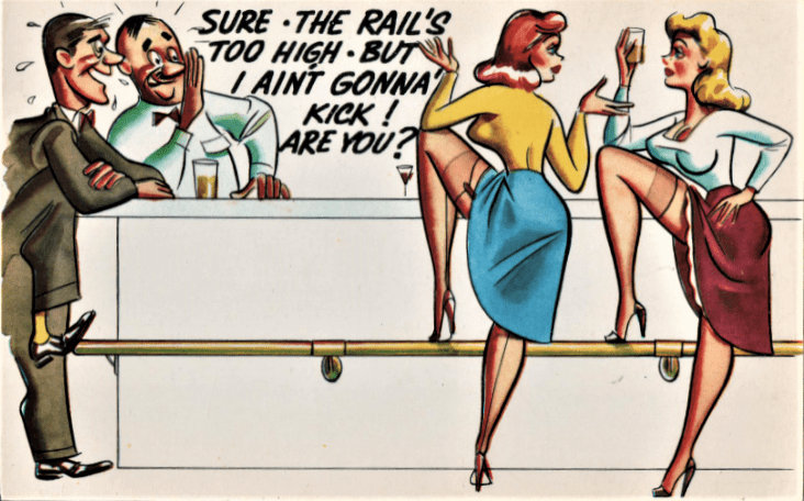 Another theory makes it a simple marketing tool to get women to come to bars. The old style neighborhood bar was a men’s establishment, according to this theory. Women and even children might show up, but only to buy beer to take home for the family. Only men hung around the bar drinking until all hours, and a number of bartenders realized they could double the take if women could be coaxed into the place. (Or tripled, as men who didn’t want to go to bars to drink might show up to meet women.) What would bring women into these rugged all-male spots with spittoons on the floor and pig’s knuckles on the free ,lunch counter? Why, little paper umbrellas, of course! So in the 1930s, a bunch of bars got together and decided….I am still getting my head around this story, and I will get back to you when I figure it out. Mind you, there IS a belief that any drink with an umbrella in it is a Girlie Drink. It’s the fruit juice.)