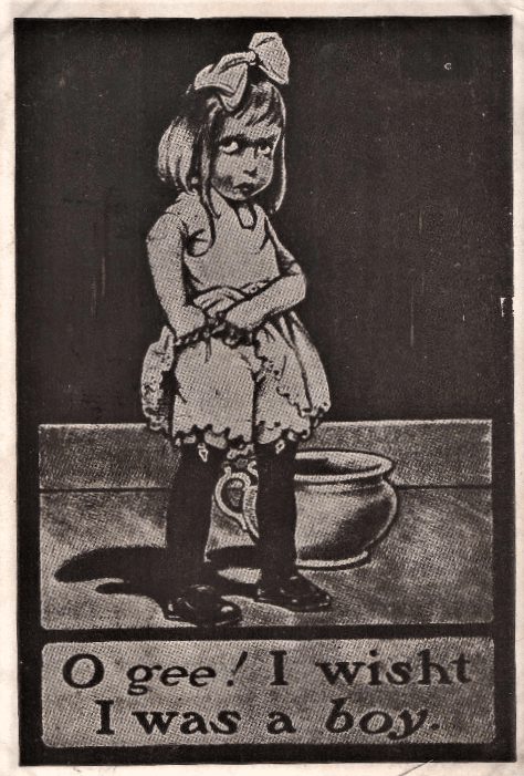 As long as we’re in the bathroom, where we left off at the end of the last column, let’s visit this young lady, whom I adore for her deep resentment of her plight. But, um, wasn’t that a little, er, ANATOMICAL a reference for the authorities of the time? (If you didn’t catch it from the chamberpot, she is grieved that a woman has to undress so much more than a man just to…okay, you got it. Just checking.)