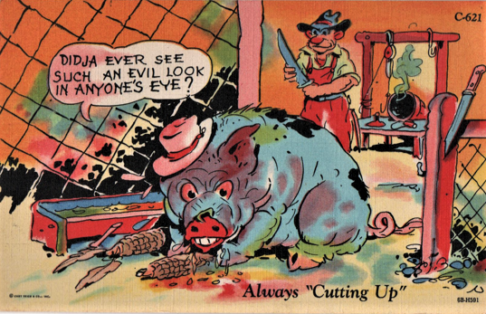 Postcards even anticipated our slasher movies, but when they did, they did it with a grin.