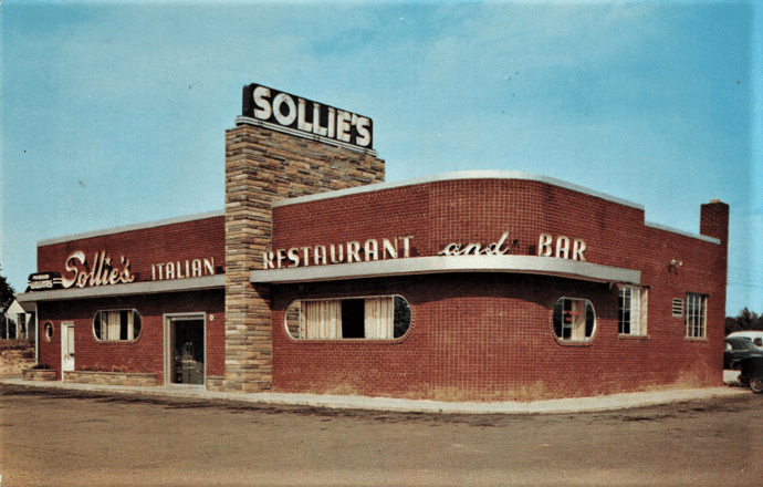 In love, literature, and promotion, one is always mystified by what some people choose. I GUESS I can understand why some people would show off the exterior of their restaurant. If a person comes looking for it, they can recognize it and pull into the parking lot, right? Knowing absolutely nothing else about Sollie’s than that it had its picture on a postcard, you’d drop in here for a pizza.