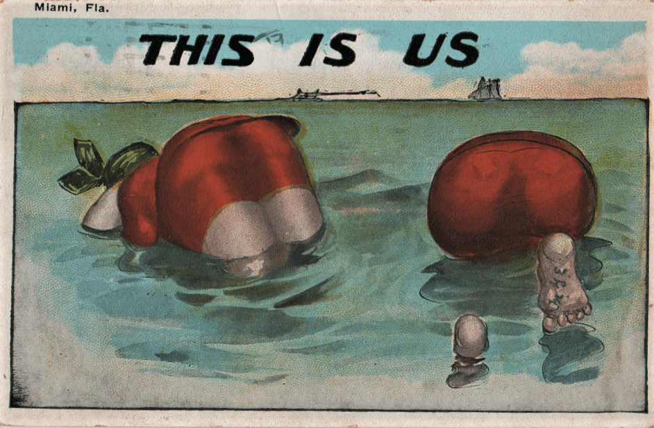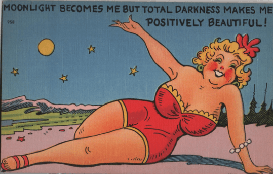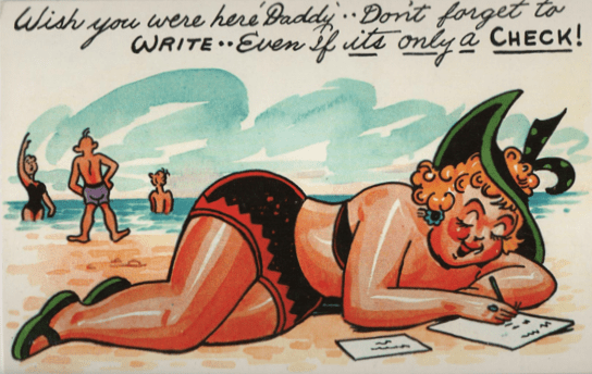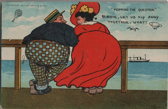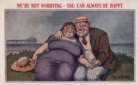 We will primarily consider postcards featuring Round Women, as men seem to have gotten involved in a catchphrase of the day which I haven’t quite been able to extract from history. The “Nobody loves a Fat Man” gag is a bit shadowy, despite the massive number of cards issued to prove or disprove the assertion.