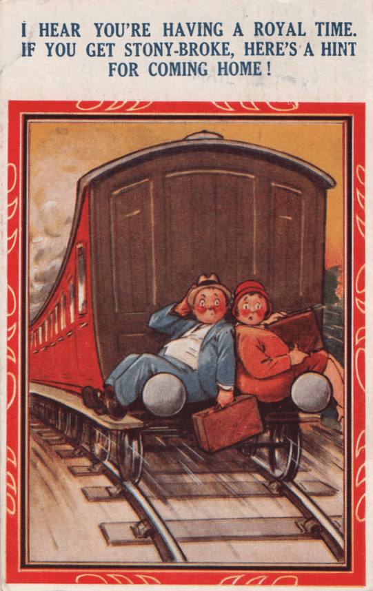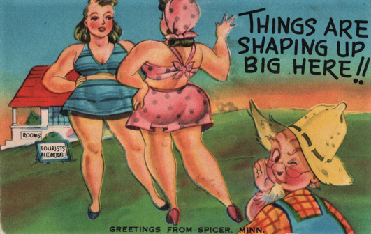 And there are dozens of variations on this gag, which is meant to represent the people who bought and mailed the postcard. At the very least, this suggests that the Round Figure could be laughed with, and not just at.