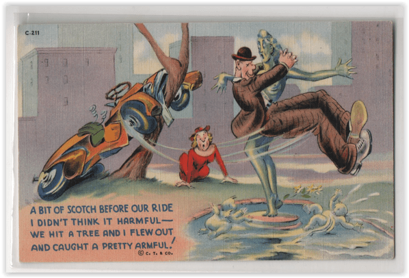 Ah, the Monday before Christmas, and what can you expect as a surprise gift from your Uncle Blogsy? Old Jokes? Not much of a surprise. Was it? The selection of gags from the Old Joke Quizbook comes from the section covering mishaps, faux-pas, and straight accidents, the sort of thing life tosses at you to make your existence more interesting, even if you didn’t want it touched up in that particular way.