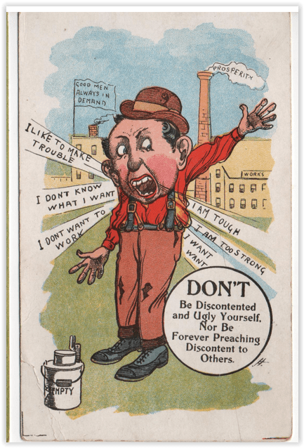 One of the most common bits of advice of the day was about maintaining a positive attitude. This artist goes a little overboard about it AND adds in a little anti-union sentiment to make it even cheerier. By the way, on the subject of that positive attitude….