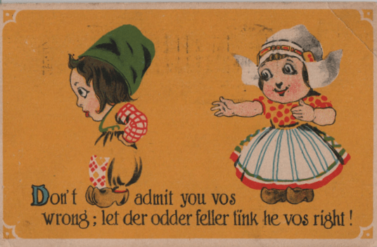 For the moment, I am ignoring those bits of advice which seemed good at the time and have fallen under disapproval in the modern age. (You’d be surprised how many romantic postcards used the captions “Never Take No for an Answer”.) I’m looking at the advice that was a little off even at the time, BUT which was offered up as worldly wisdom (then, as now, some postcards offered you dumb advice knowing you would enjoy the dumbness. These folks don’t get into this blog, either.)