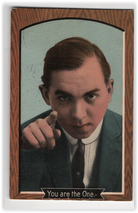 I THINK this is intended to be the same sort of challenge, but less self-pitying. And a bit more in the “get up and go” style of the 1910s. You decided what you wanted and you went out and got it, letting your drive and concentration break down all obstacles along your way. This postcard was meant to let you know who was the object of affection.