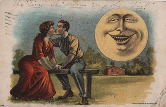 This continued into a later era of postcards. The full moon must be looking on, approving of the goings-on.