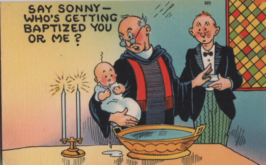 Even in a sacred setting, it was okay, if a baby was involved. But grownups were, well, too grown up to be indiscreet and discuss such business on a postcard, right?