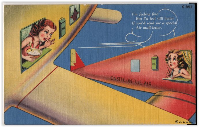 I also miss, kind of, the flying car. This was more a matter of science fiction than sober consideration, but air travel was the wave of the future. One American airline was poised to seize control of the skies after the war, and once it was in charge, why, the sky was the limit. People would give up their cars and commute by airplane, helicopter, or who knew what variation we might come up with.