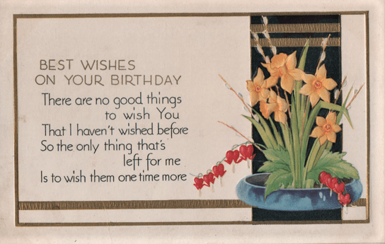 As long as we’re admiring ingenious messages, how about this one? The last time I saw any data on the subject, birthday cards were the number one greeting cards sent in the United States, and even in the day of Facebook wishes and emails, I would guess that’s so. The writers of these cards have a long row to hoe. Is this the sentiment of the sender or of the poet, who thought, “Golly, gotta write one more birthday sentiment this week., What can I say that I haven’t already said?”
