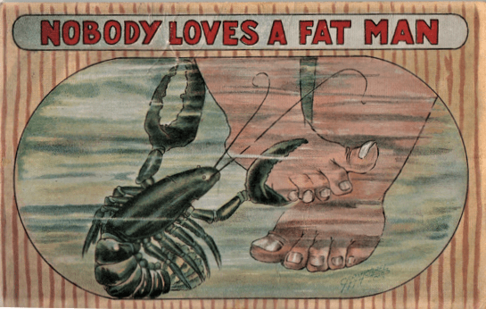 I have been unable to track down the song, but the sheet music for this number features William Howard Taft, the heaviest human being to serve as Chief Executive. Men at the beach, chubby puppies, and small round children appeared on postcards bewailing the truth of the title.