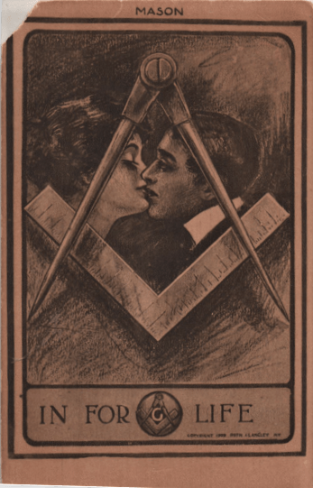The organization whose postcard appears at the top of this column was not so VERY secret, though I’m not sure the sun itself was a member. The Order of United Commercial Travelers was founded in the late nineteenth century as a meeting place, support group, and eventually financial assistance organization for commercial travelers, also known as drummers or traveling salesmen. This card is obviously a recruitment device, showing the people wearing the insignia of the group getting together to enjoy life. As its partial purpose was to invest money so they could tide over members during periods of bad sales, keeping things very secret was not essential. (Thanks for noticing, but I was going to let that “tide” joke pass without so much as a wave.)