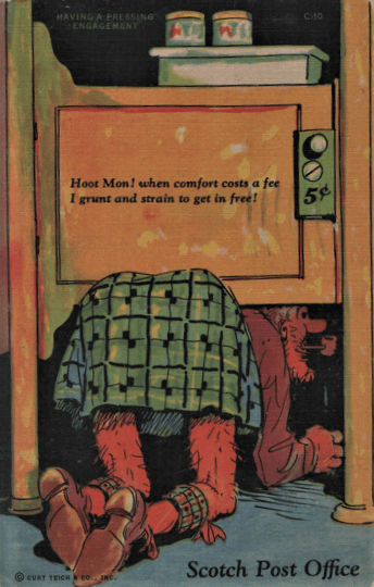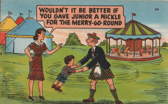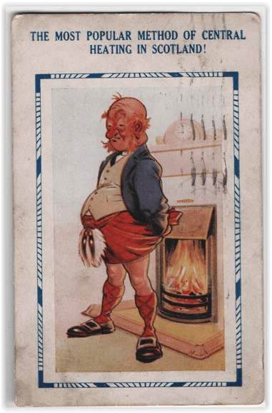 The prevailing use of the Scotsman in postcards, of course, was as a symbol of cheapness.