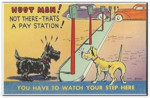 Even the dogs of Scotland were hauled in on the joke. (Note that “Hoot, Mon” was as necessary to a stage Scotsman as “Begorrah”: was to a stage Irishman. The reason you don’t see it on more postcards is that your postcard artist also had to be thrifty…with space for captions.)