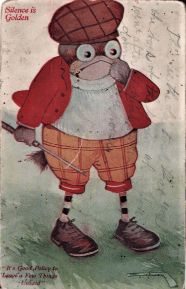 We are excluding, with some regret, golf clothes, which are also an entirely different matter, both on postcards and in life generally. Froggy,. At the top of this column, will have to wait for some other blog.