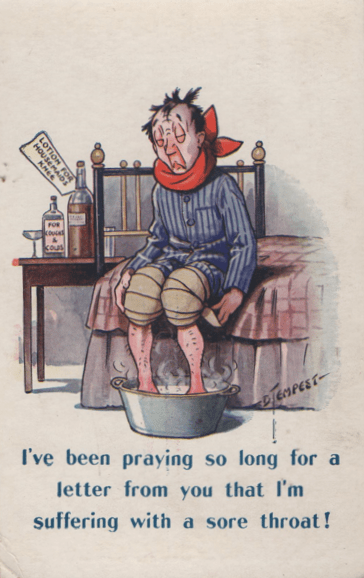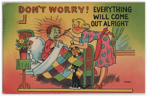 One over-the-counter and/or home remedy was in every home. I could have done a whole blog just on laxative postcards alone, with castor oil leading the pack. You’re welcome.
