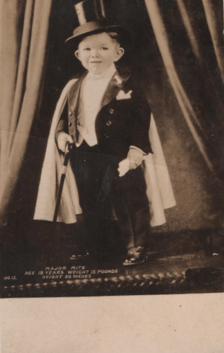 Major Mite here has just as much right to his title as Wilhelm had to his, but during World War II he DID do recruiting posters for the USMC. He was a circus performer, as you might have guessed, and such folk knew the value of postcards from a very early era. Clarence Chesterfield Howerton’s main claim to fame TODAY, however, is that at 2 feet 4 inches tall, he was the smallest Munchkin in The Wizard of Oz. So you have seen this celebrity more often than any of the others. (He apparently had no lines, so you have to look for him yourself.)