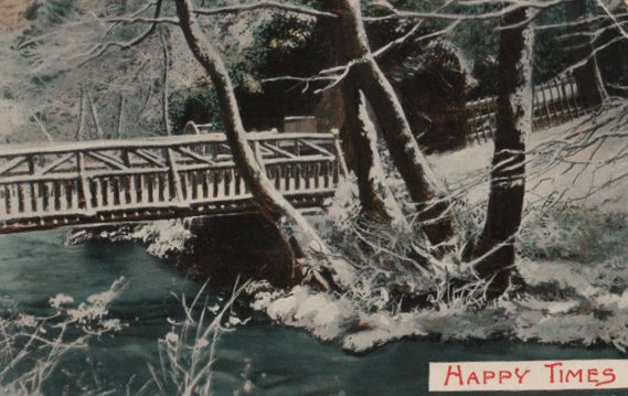 Postcard artists were just as ready as songwriters to exploit the magic of a snow-covered landscape, with or without a reference to the time of year. The cozy scene at the top of this column dates to 1907, but over a century later, you can see pretty much the same scene if you happen through the right neighborhood.