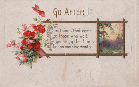 There’s a reason that “Do It Now” is the subject of so many postcards and cartoons through the year. Here’s another admonition to seize the moment…or something.