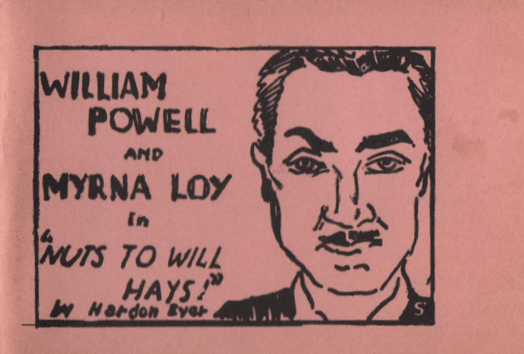 Take, for example, the title shown at the top of this column. The anonymous artist has made an attempt, at least, to make the faces in the story KIND OF resemble William Powell and Myrna Loy. But any Tijuana text worthy of its eight dirty pages knows the faces are not what you want to see. So in virtually every panel of the story, one or both of the characters are posed so their head is out of sight. This saves time in drawing so the artist can get bon with the story. (The word “story” is an exaggeration. The plot, as often happens, is taken care of in the first panel, where our two protagonists, who appeared as man and wife in the Thin Man movies, announce they’re tired of being married onscreen but never having sex, thanks to the movie oversight board, the Hays Office, run by conservative Postmaster General Will Hays. The next seven pages are all about what the readers wanted, “readers” being as accurate a term, I suppose, as ”story”.)