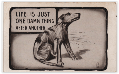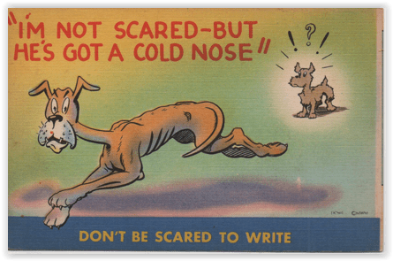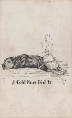 Let’s change subjects, and ends of the dog. We will move completely away from the habit of butt sniffing if we note that dogs on postcards were frequently cited for having that cold nose.