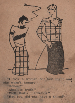I have read a lot of joke books You might have gathered that just generally, reading what I have to write, or perhaps you have been with this blog for a while and remember when I serialized my old joke quizbook. But I mean to say that I have read a LOT of joke books, and a lot of different kinds of jokebooks, from the little ones which appeared in boxes of Cracker Jacks to massive, exhaustive tomes. I have experienced, in a small way, the phenomenon from the days of vaudeville and minstrel shows when gag writers would simply publish a regular magazine for those involved in the trade, filled with jokes and skits to perform.