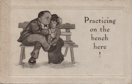 We have examined, from time to time, the pleasure our postcard artists took in the infinite mixings and matchings of romance, but we have been primarily concerned with girth. The artists found other ways to express romance in inches. (Mind. Gutter. Please.)