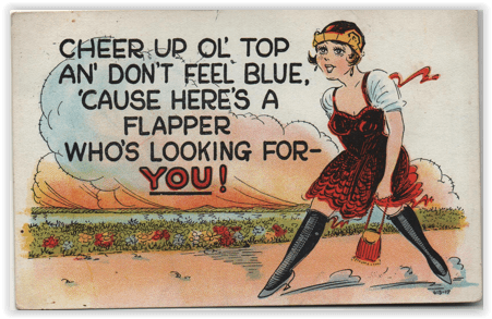 Mind you, the shorter skirts of the 1920s did offer opportunities for illustration not hitherto available, to the extent that some experts on these matters have decided nylons were available in 1919, since stockings were not worth ogling until the days of nylons, and men were decidedly ogling. (We could consider the whole history of Rayon and nylon and how they changed the world, but there’s only so much time in the day.)