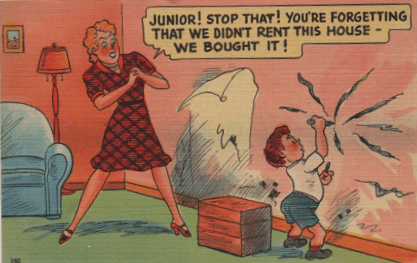 You will notice at once that cartoonists’ renderings outnumber the actual photographs this time around. This is because a nasty prank just doesn’t seem as realistic when staged as adorableness does, and few children posed for photographs of themselves doing things which would get them scolded, spanked, or left with no dessert at dinner. (This was, you understand, in the days before Social Media.)