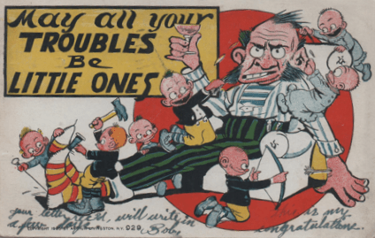 In the interest of fair play and equal time for opposing views, something I am very serious about if it will bring me another subject to write a blog about, I thought we might consider postcards which present another side of childhood than the cute, well-dressed, well-behaved tots we considered in our last column.