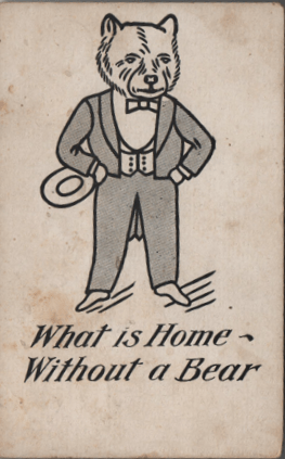 We have covered elsewhere the many, many postcards about people running off with a bear behind, so we will not repeat any of that here. Nor, by special request, will I tell any more variations on the classic joke about the preacher and the bear.
