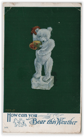 The role of bears in tales and on postcards is complicated, however, because of the fact that the bear is so dang cute. Okay, maybe this is not our best example.