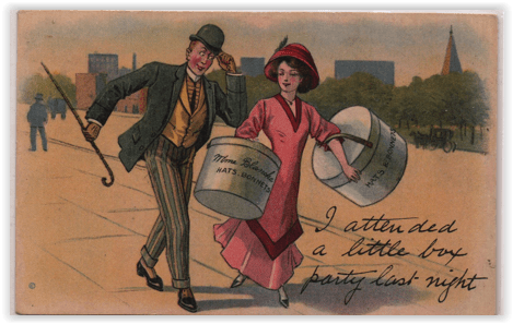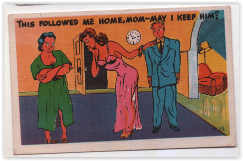 So choose what you like from those approaches, or the possibilities offered by the postcards of our ancestors. Let me know what happens, but remember the first rule of dating: bloggers assume no responsibility if you wind up in court.