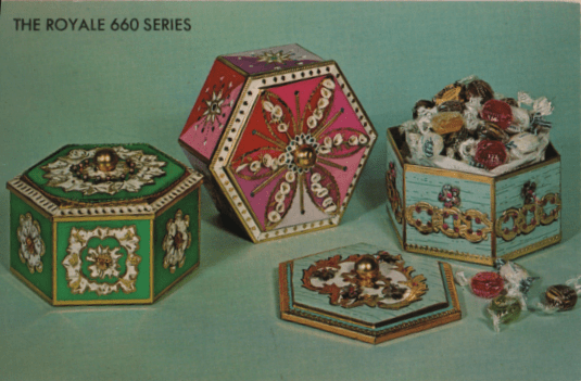While others became a trifle obscure. This may LOOK like an ad for fancy boxes of holiday candy, and so it is. But it was not meant for the customer looking for a present to give on Valentine’s Day. No, this postcard was for department store managers looking for something pretty to display in the candy section during the critical months of sale.