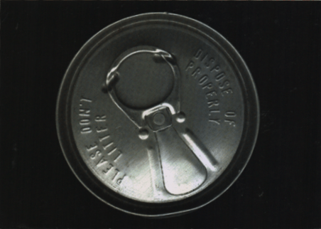 This postcard, as you can plainly see from the picture, is an ad for a book. A trivia quiz book published a quarter of a century ago, asked if people could remember things like the removable tabs on cans of Tab or Kick. I wonder how this worked: if you NOTICED “Hey, that’s an old-fashioned can!”, you were probably too young for the book.