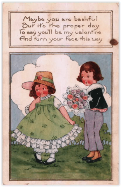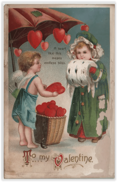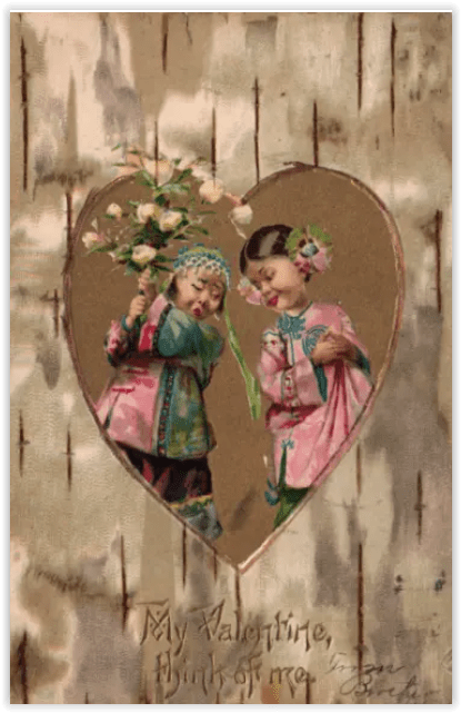 Artists could actually apply Valentine wishes to any picture, of course. Love being universal, one could draw whatever ethnic group seemed especially charming and affix the wishes accordingly. (Yes, there are plenty of cards featuring Dutch kids with Valentines…enough for a whole nother blog, really.)