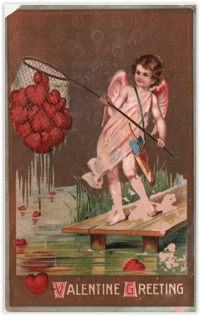 But the most common occupation for Cupid on Valentines was as a mailman, delivering hearts to all and sundry. Of course, some senders preferred to take their greetings over personally. (That way you could seal it with a kiss on arrival.)