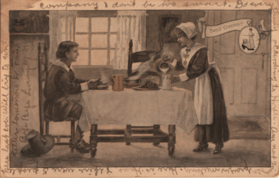 Many times, though, the food directly brings on the romance. There are dozens of postcards which show grateful diners yearning for their waitresses. And how much milk must have been consumed by those men who pursue milkmaids! I’m surprised the dairy industry survived at all, between the delays in getting her back to the dairy, and the amount those suitors must have drunk (at least to suggest that was all they were really after.)
