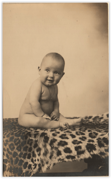 Anyhow, the face smiling at you at the top of this column is Lavonne (Lenins? Levins? Levine?) at the age of 2 years and 1 month, in Des Moines, Iowa in December of 1915. We know this because someone wrote it on the back of the RPPC (Real Photo Postcard) which was printed for sending out to the family. If you are one of those highly specialized blogreaders, used to scanning everything you find on the Interwebs for inconsistencies and things that don’t sound right, you may be objecting, “Yeah, I see her name and age, but where do you get 1915 and Des Moines out of that?”