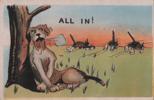 But this doesn’t seem to be the case. My inventory, as well as a look at the offerings of other postcard mavens online, suggests that the two cartoon animals are more often involved with romance.