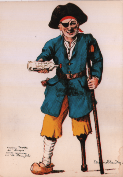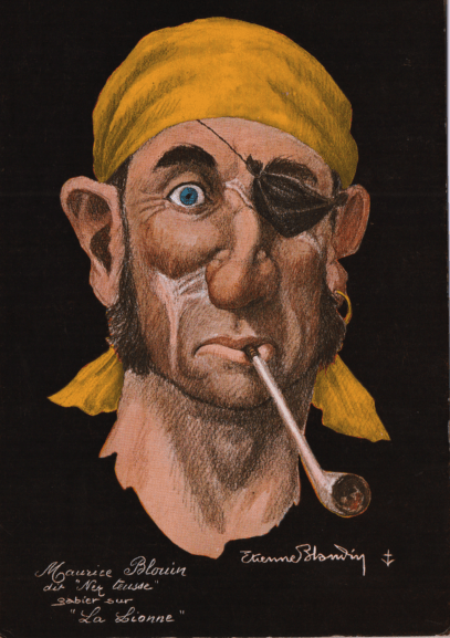 A jolly collection which came into inventory here in Blogsytown is about one fifth of a set of Corsaires. These are colorful portraits of freebooters and privateers (I don’t see ANYOE using the word “pirates”) from Dominique Leroy here–a captain also known as the Pistol Corsair, who was captain of the Foudroyant (Lightning)—to ship’s carpenters, sail specialists, and even onshore support staff.