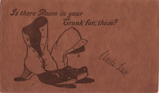 Similarly, these well-worn droopy high-button shoes are merely a mild exaggeration, something fun to draw to illustrate what COULD have been construed as a racy innuendo. (You wouldn’t pack so personal a belonging of someone else unless you were really well-acquainted.)