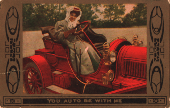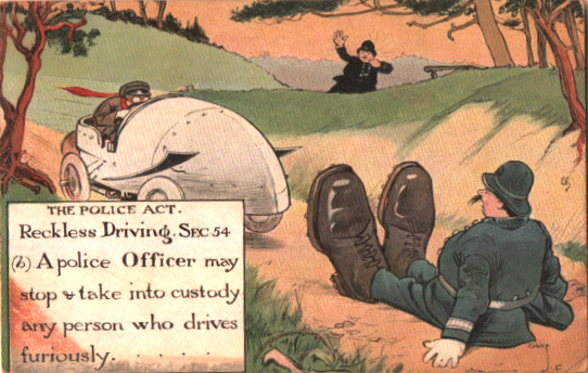 Antique postcards with cars tell us how different driving was, once upon a time. They take us back to when steering wheels were just replacing the tiller and all cars were reverse convertibles (you had to stop somewhere to put the roof ON.) Dusty ghosts of bygone rules rise from the past and we recall the days when cars were such a novelty that just about any driver would be arrested just for having a noisy mechanical vehicle