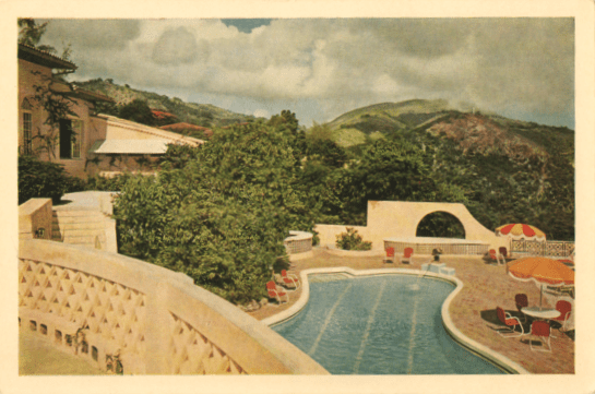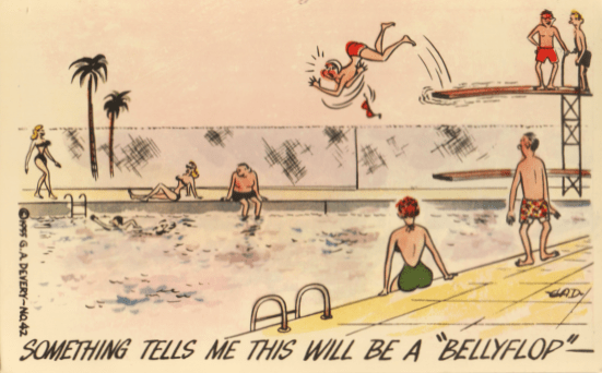 The earliest wild weird shape I could find was a pool shaped like the letter T, built for William Randolph Hearst for his elaborate home at San Simeon. (This was later replaced, so you can’t go look at it.) It was not until after World War II that changing the shape of the pool became easier (at least for people with deep pockets.) And even then, the new shape was simply described as “kidney-shaped.” (Which COULD lead us to the fine old joke about the man who bragged about having a “kidney-shaped pool that even has a stone in it.” But let’s ignore that.)
