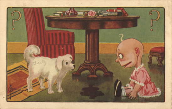 In view of all this evidence, it’s hard to imagine why so many other postcard artists believed all dogs do all day is empty their bladders. Perhaps some sinister postcard rivals were responsible.